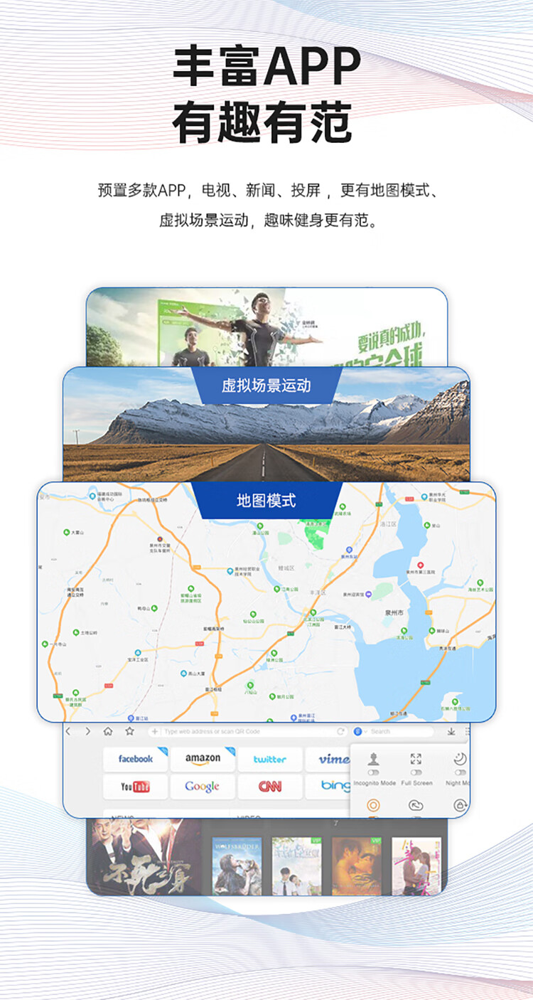 舒华高端跑步机SH-T9100T(V10+)拥有超大高清32寸10点触控晶屏的工业屏,具有扫码、刷卡、人脸识别等多种智能登录方式,方便快捷,并且有在线教学、专业健身模式随意切换,让您开启科学健身。