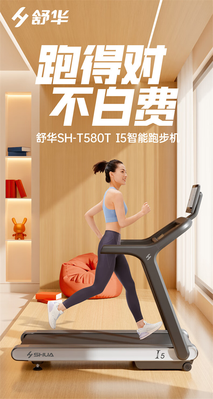 舒华家用跑步机SH-T5100持续马力达1.25HP,具有500×1350mm的跑台,运用无线心率接收模块监测心率,运用6位硅胶减震设计,最大承重是126kg,可以满足大多数家庭的使用。